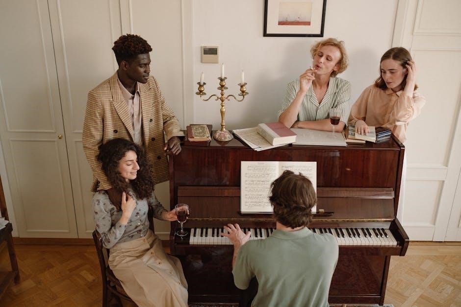 Alfred’s Group Piano for Adults Book 1 systematically introduces fundamental musical keys, providing a solid foundation for harmonic understanding and practical application. The initial focus lies on establishing proficiency in several major keys, crucial for building a versatile skillset.